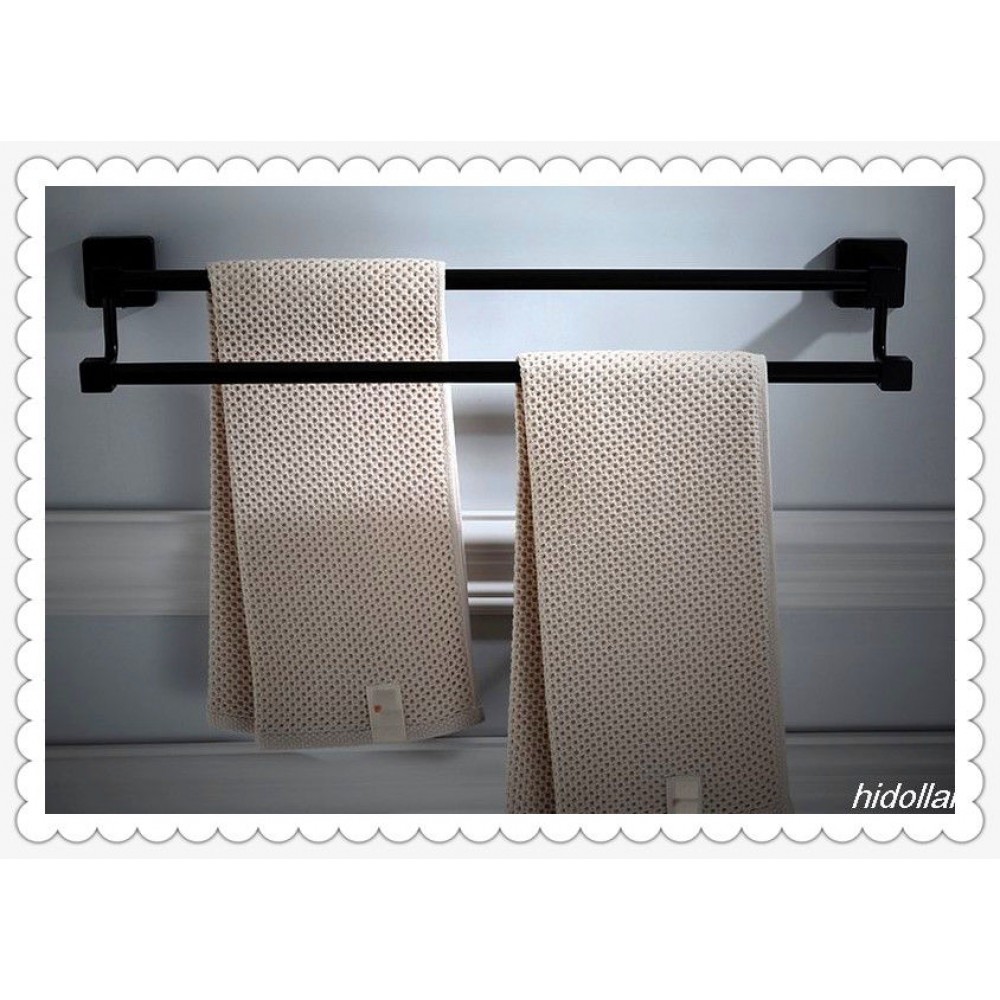 DUAL BATHROOM KITCHEN LAUNDRY BLACK SQUARE STAINLESS STEEL TOWEL RAIL BAR HOLDER
