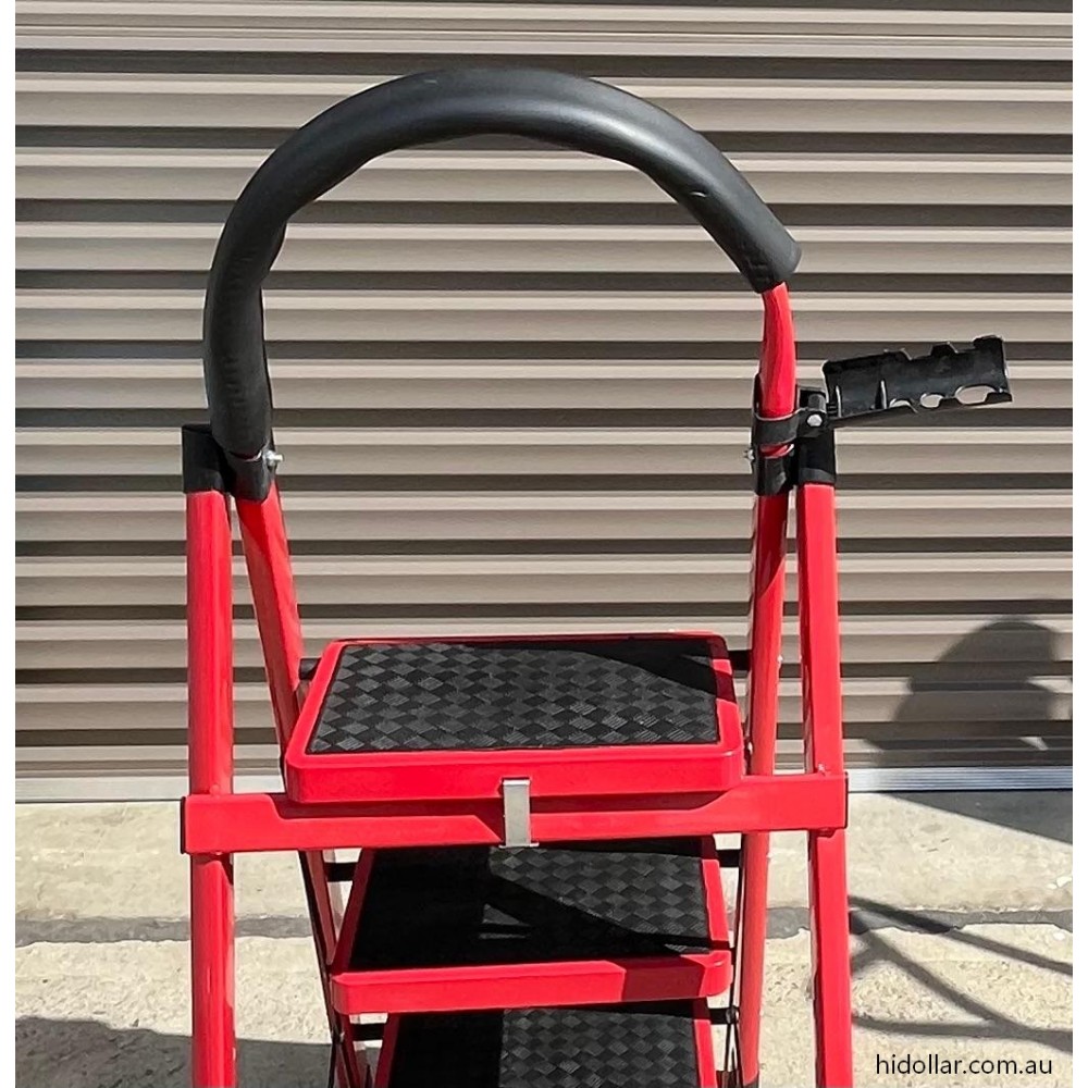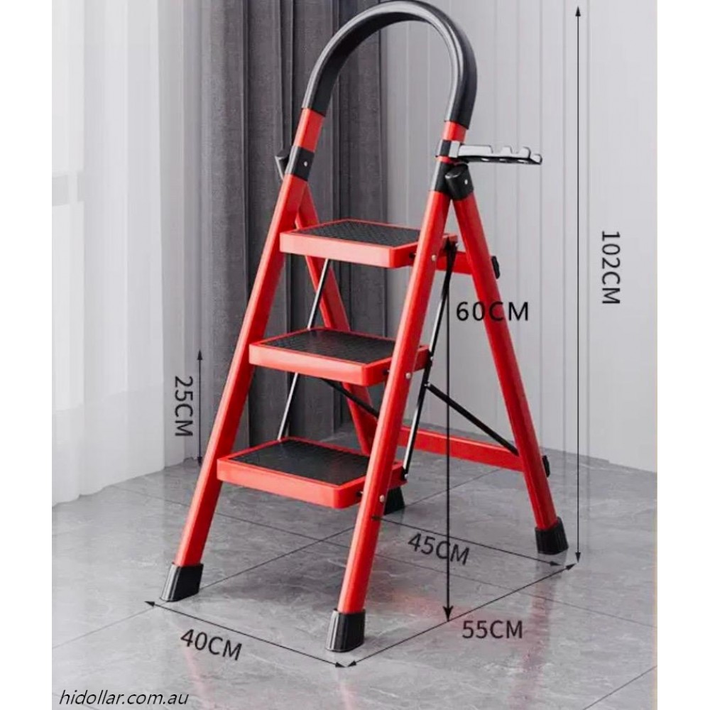 STEEL FRAME 3 WIDE TREAD STEP LADDER RUBBER GRIP FOLDABLE THREE STEP
