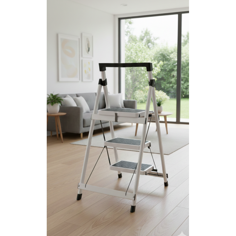 STEEL FRAME WIDE TREAD THREE STEP LADDER FOLDABLE 3 STEP LADDER FLAT TOP
